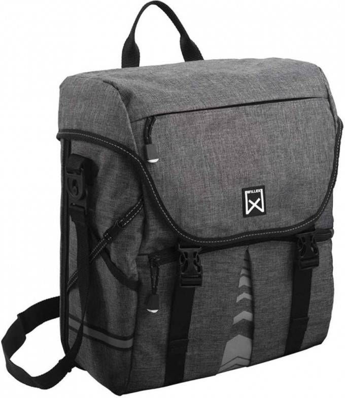Deze antraciet compacte enkele tas met afneembare en verstelbare schouderband heeft een binnenvak en handig haakje voor sleutelbos etc. Inclusief gratis grote regenhoes met Willex reflectie Met reflecterende bies en opvallende reflecterende bedrukking Vergrootbaar met extra rits en met ritsvak voor Waterdicht en waterafstotend polyester Inhoud: 10 liter.